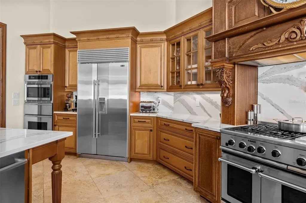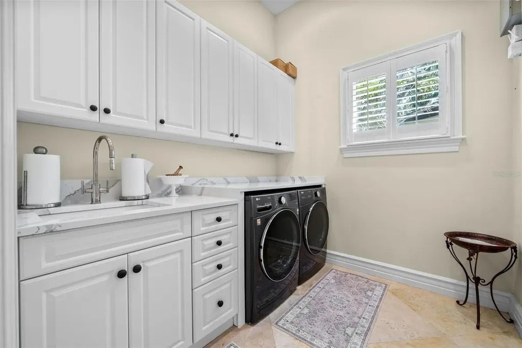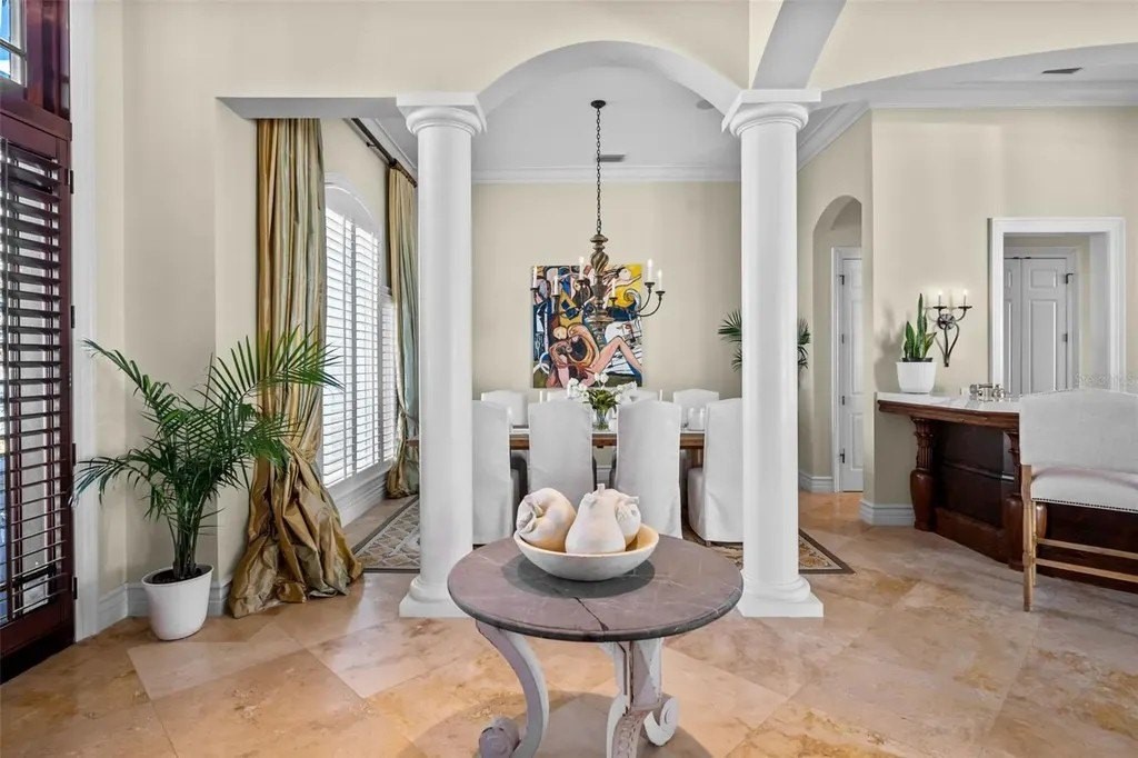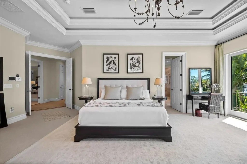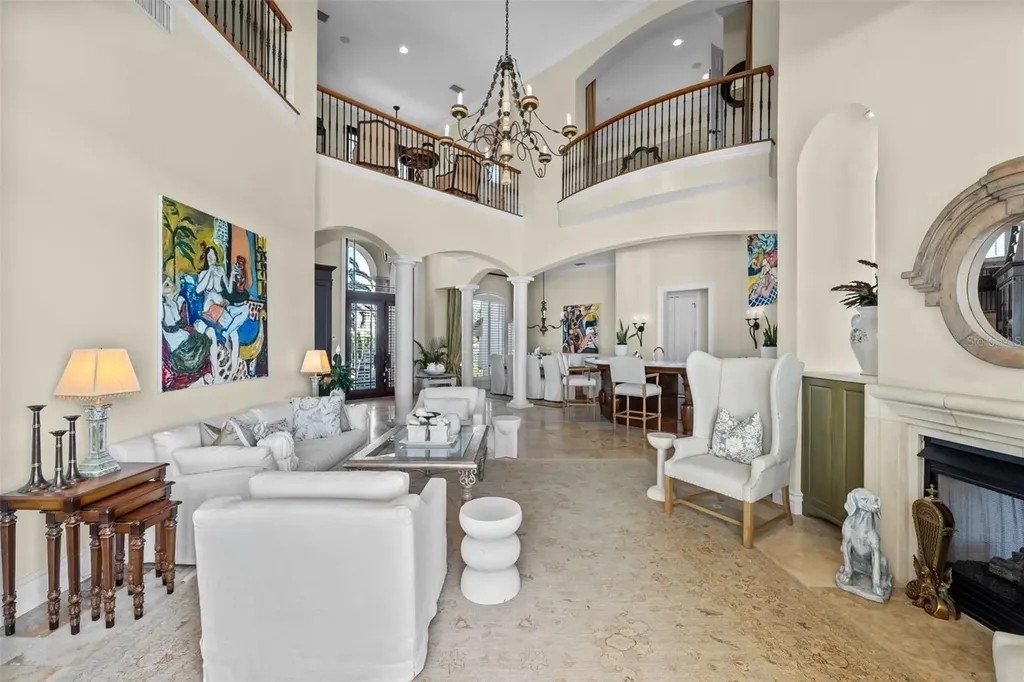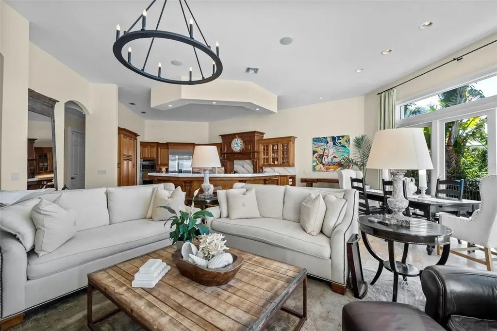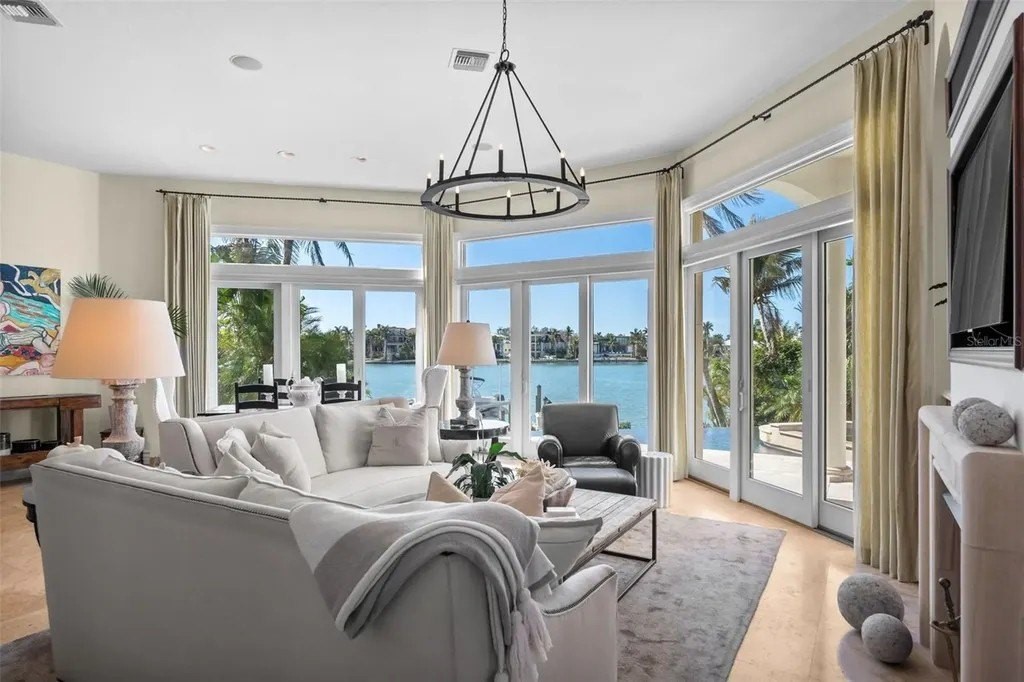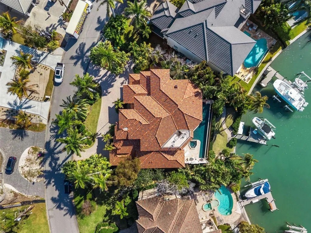 Presenting a distinguished waterfront estate located in Sarasota's premier bayfront community, Harbor Acres, widely regarded as the city's most coveted neighborhood. Perfectly situated on a protected deep-water boat basin, this property offers immediate access to Sarasota Bay with the added benefit of a boat dock and lift on calm waters-ideal for larger vessels. With prized southern rear exposure, the home is bathed in natural light throughout the day, while capturing glowing sunsets across the water - a rare and highly desirable feature for waterfront living. The thoughtfully designed 4-bedroom, 6 bath floor plan offers exceptional flexibility and privacy, with distinct guest wings that function almost as private suites - ideal for hosting extended family, visiting friends, or even live-in arrangements without sacrificing personal space. The seamless flow between formal and casual living areas makes the home equally suited for elegant entertaining or relaxed everyday living. At the heart of the home, the chef's kitchen features beautiful quartz countertops, island, abundant cabinetry, and premium appliances, opening effortlessly to the family room and outdoor living areas. A striking double-sided gas fireplace creates ambiance between key gathering spaces, enhancing both intimate evenings and larger gatherings. Enjoy the rare luxury of choosing between two primary suites. Both primary suites are serene retreats offering generous proportions, tranquil water views, and a spacious walk-in closets with custom built-ins designed for optimal organization. The spa-inspired baths provides a luxurious escape at the end of the day. Outdoor living is where this property truly shines. A fully equipped summer kitchen anchors the covered lanai, creating the perfect setting for waterfront dining and entertaining. The infinity edge pool, spa and outdoor lounge areas overlook the wide boat basin, where you can watch dolphins pass and boats glide by - all from the comfort of your own backyard.
